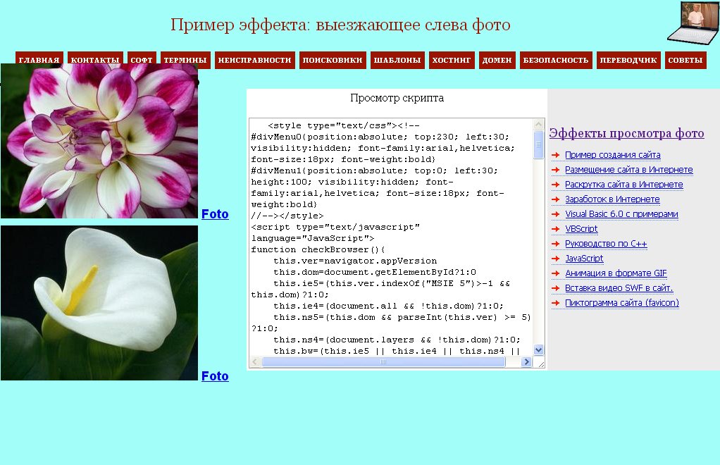 | <html> <head> <title>Создание сайта </title> <meta http-equiv="Content-Type" content="text/html; charset=utf-8"> </head> <body bgcolor="#ceceff" > <center>Создание собственного сайта.</center><center><img src="com (8).gif" width=213 height=170 border=0></center> </body> </html>  |